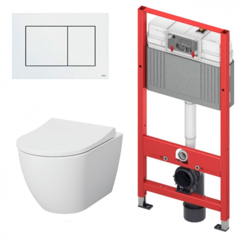 Система инсталляции TECE base kit 9400413 с кнопкой и подвесным унитазом Vitra Mia Round SmoothFlush 7510B003-0075