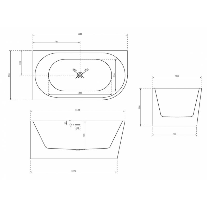 Акриловая ванна ABBER AB9257-1.5 L белая