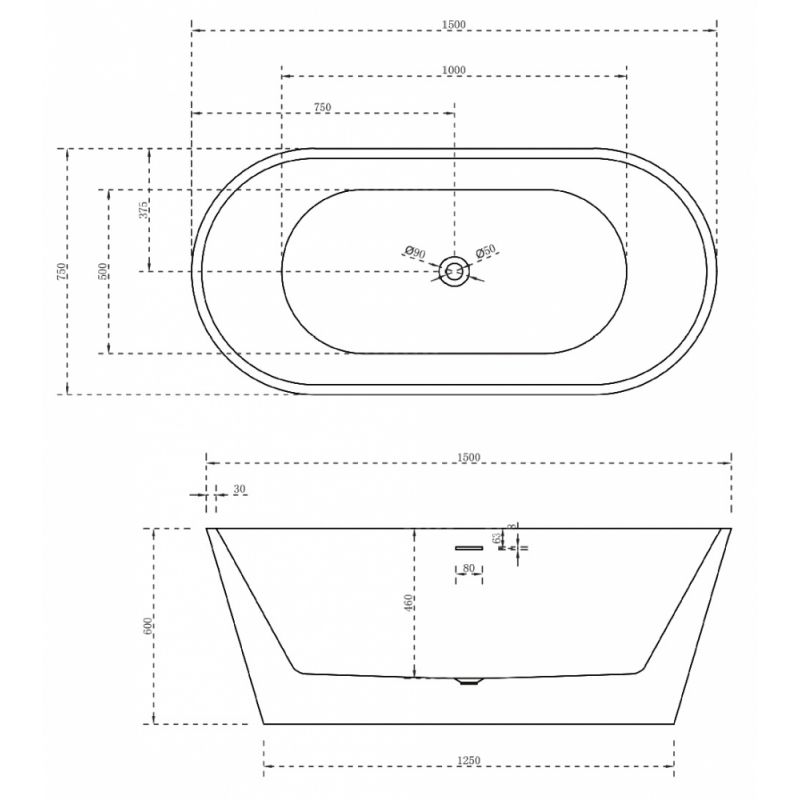 Акриловая ванна ABBER AB9320-1.5 белая