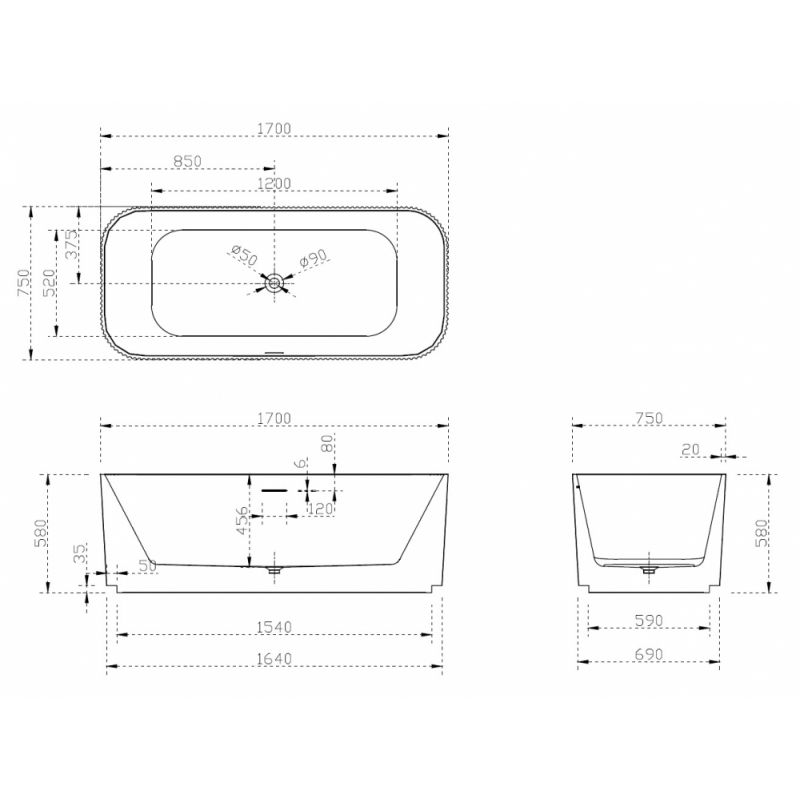 Акриловая ванна ABBER AB9363-1.7 белая