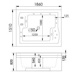 Гидромассажная ванна Gemy G9052-II B L/R (левая/правая) 185х150х76 (гидромассаж, хромотерапия, пневматическое управление)