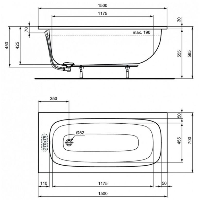 Акриловая ванна Ideal Standard i.life 150х70 см, T475701