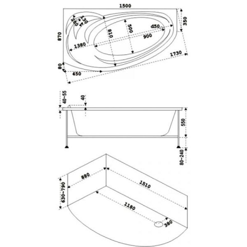 Акриловая ванна BAS Фэнтази 150х88 левая/правая на каркасе с сифоном, В 00040/В 00041