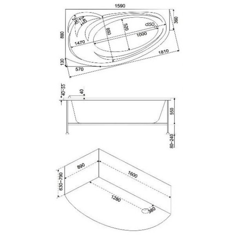 Акриловая ванна BAS Флорида 160х88 левая на каркасе с сифоном