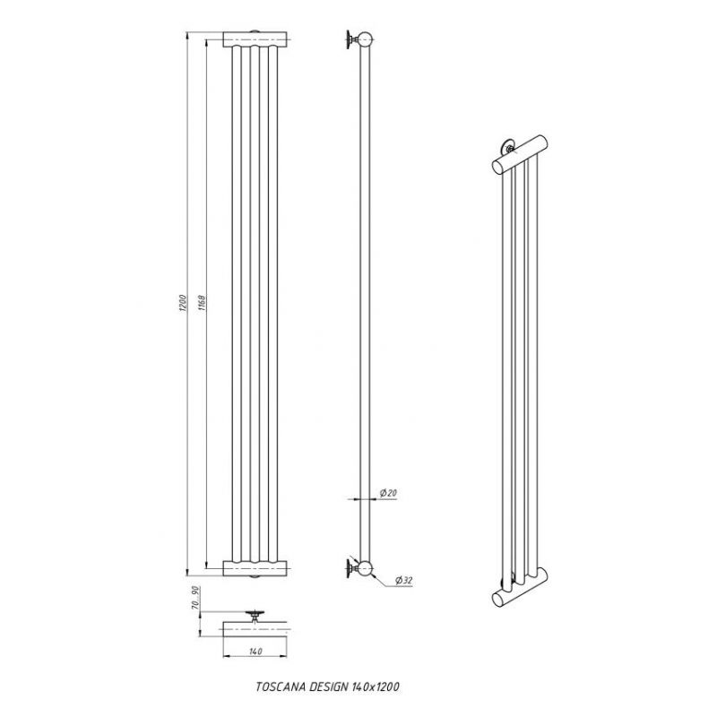 Дизайн-радиатор отопления Stinox Toscana Design 14x120 черный матовый