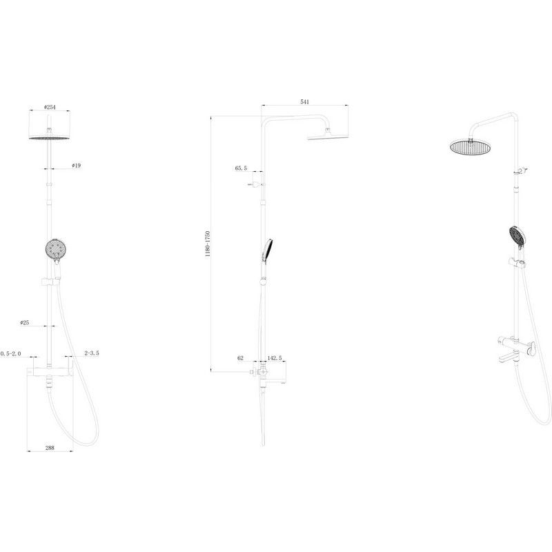 Душевая колонна FONTE на 3 потока с пов.изливом и механическим смесителем, черный матовый
