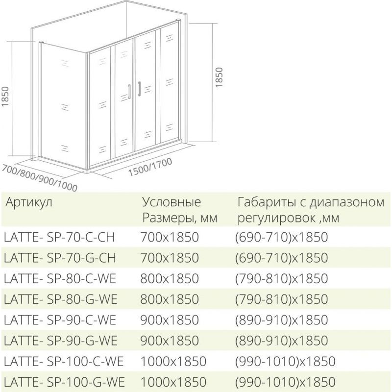 Душевая дверь Good Door Latte WTW-TD-150-C-WE, 150 х 185 см, стекло прозрачное, профиль белый, ЛА00030