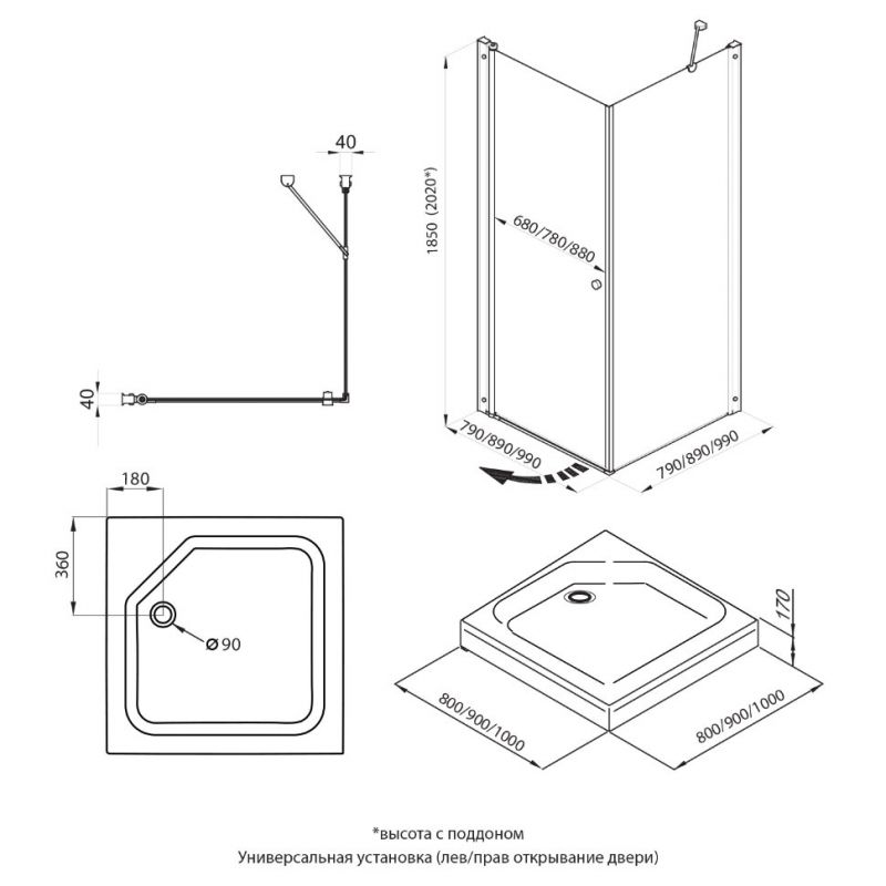 Душевая дверь Triton Форта-Хром 90*90 А