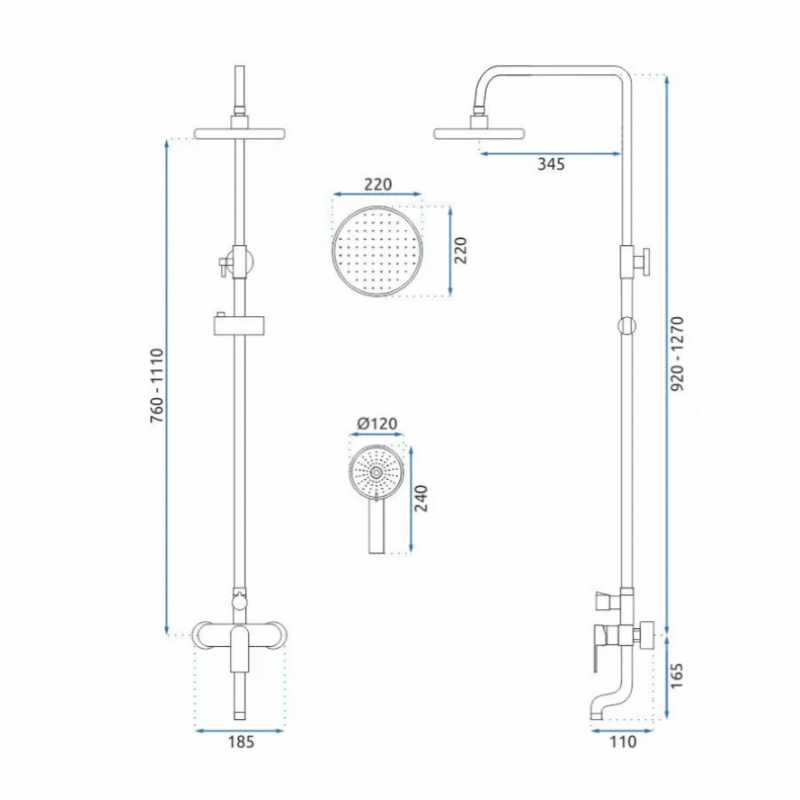 Душевая система Rea Verso Black P9146 матовое золото