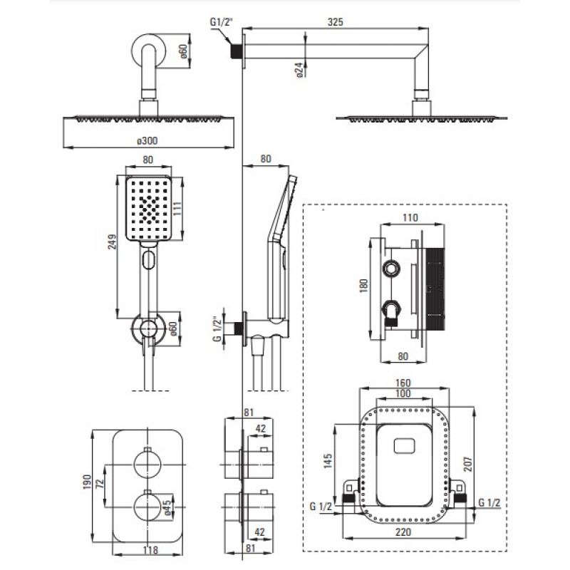 Душевая система скрытого монтажа Deante Box Titanium BXYZDEBT с термостатом титан