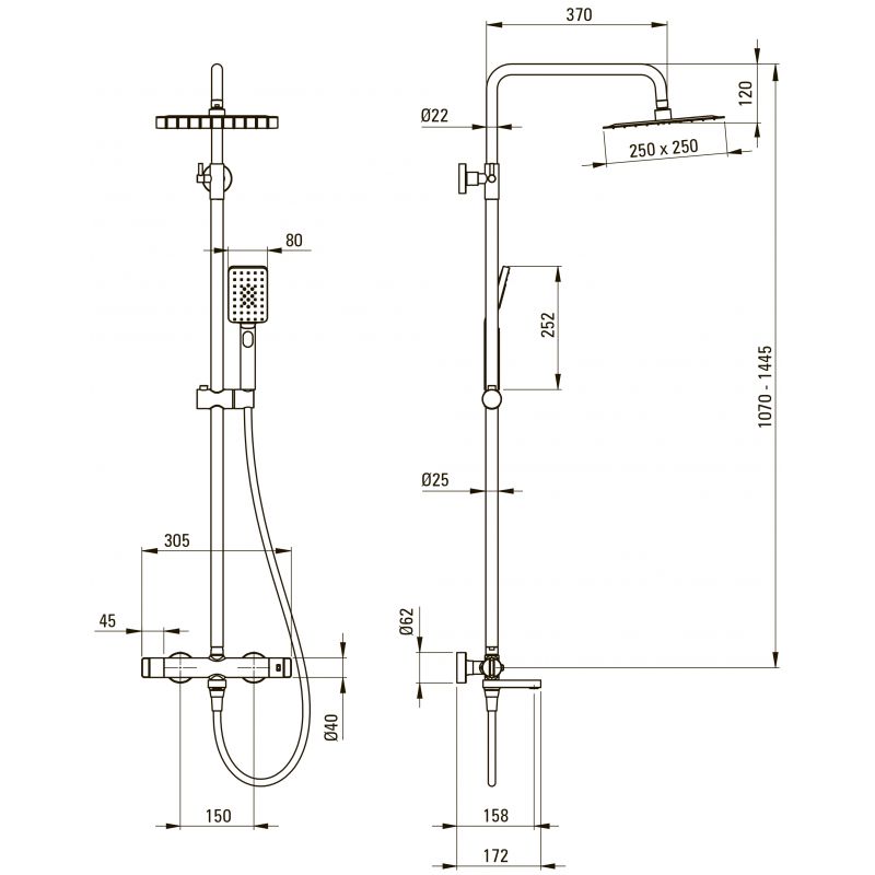 Душевая стойка Deante BR STEEL NAC_F1HT с термостатом, брашированная сталь