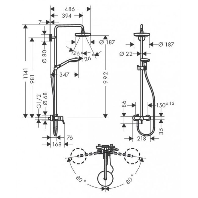 Душевая стойка Hansgrohe Croma Select S 180 2jet 27255400 с однорычажным смесителем — Характеристики и описание: