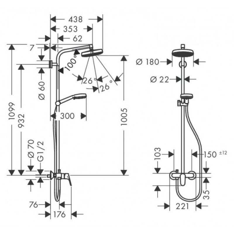 Душевая стойка Hansgrohe Crometta 160 1 Jet 27266400 с однорычажным смесителем — Характеристики и описание: