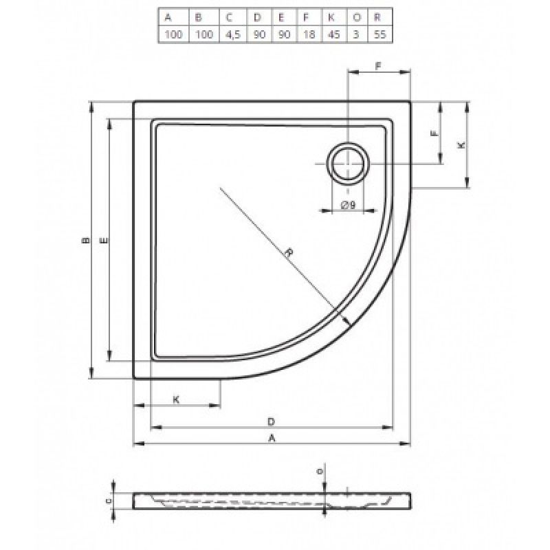Душевой поддон RIHO ZURICH 278 полукруглый 80x80, R55, DA8600500000000
