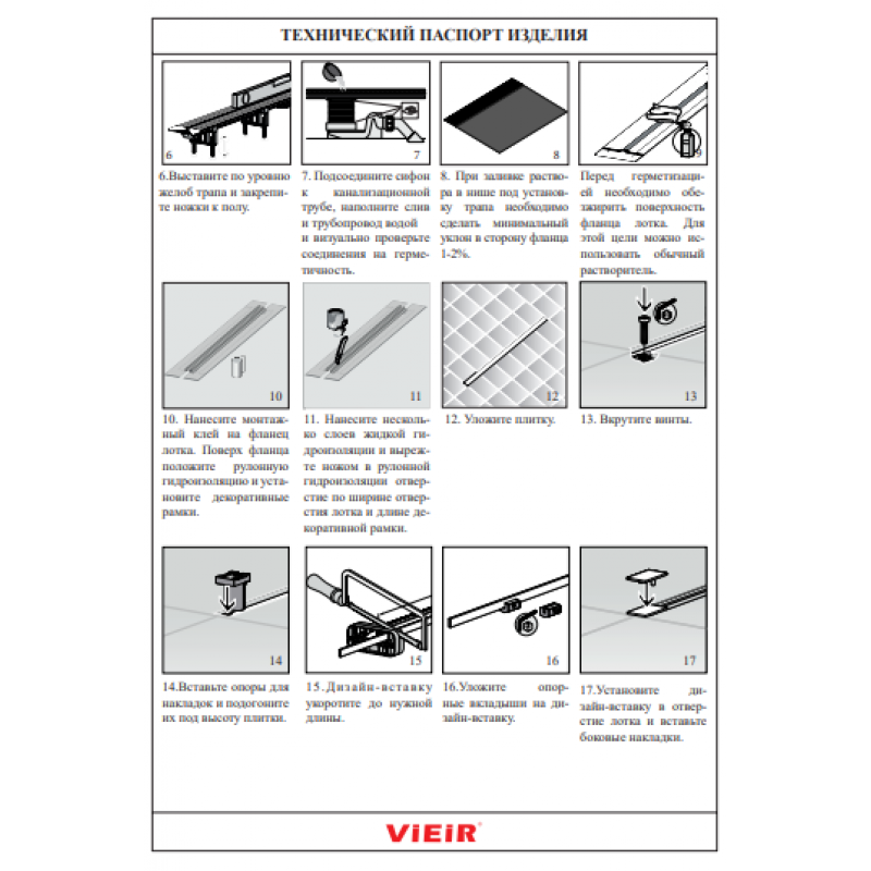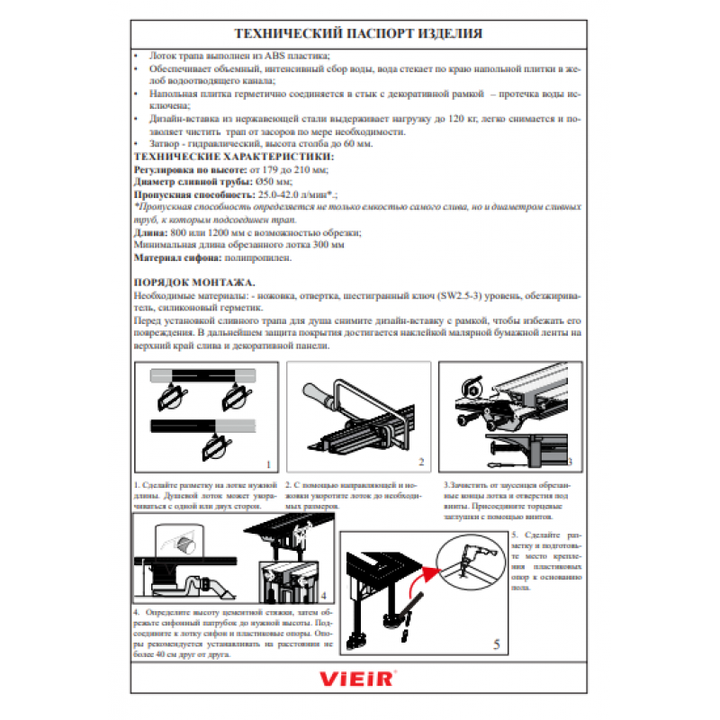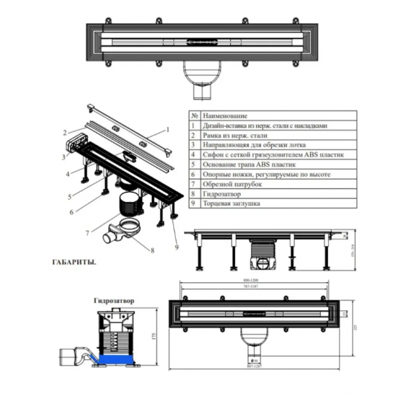 Подрезной душевой трап Veconi 80 см, DL80B затвор комбинированный.