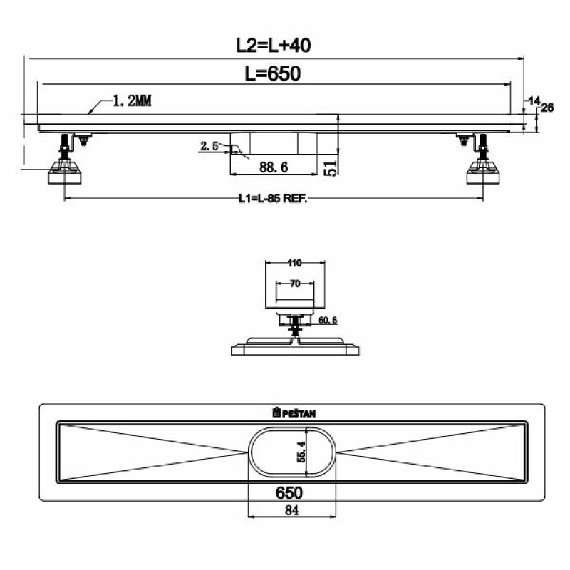 Душевой трап линейный 2в1 Pestan Confluo Titan Line 550, 13704280