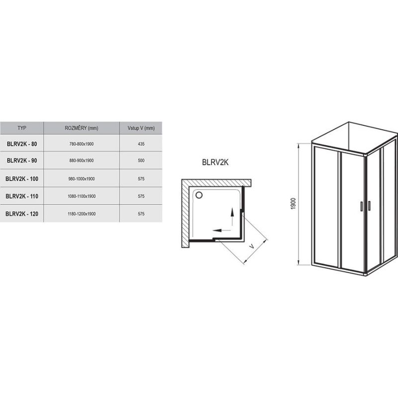 Душевой уголок Ravak Blix BLRV2K-100 белый + стекло грапе 1XVA0100ZG