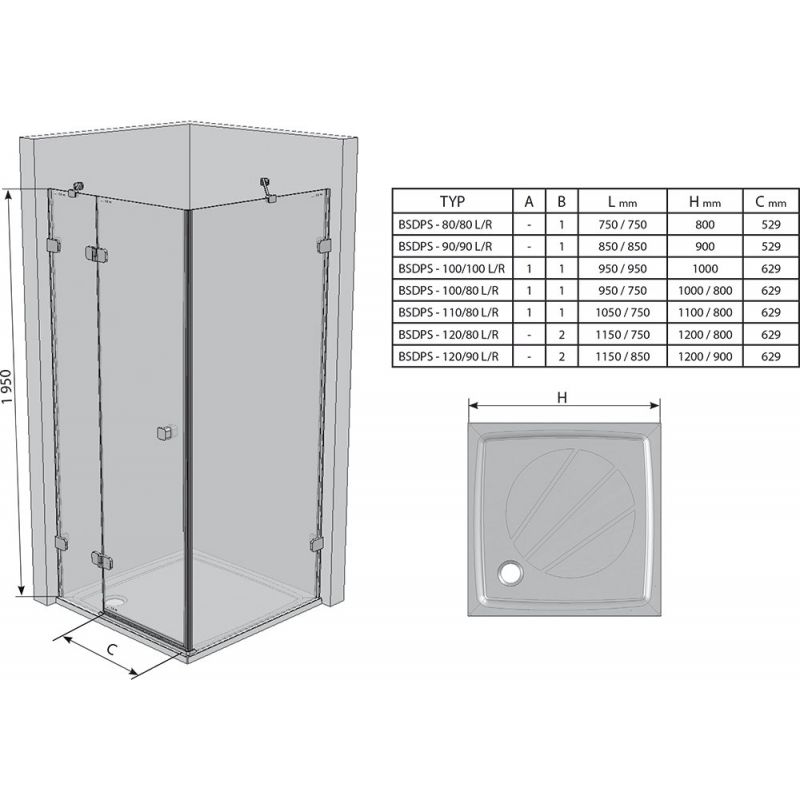 Душевой уголок Ravak Brilliant BSDPS-120/90 L, хром+транспарент, 0ULG7A00Z1