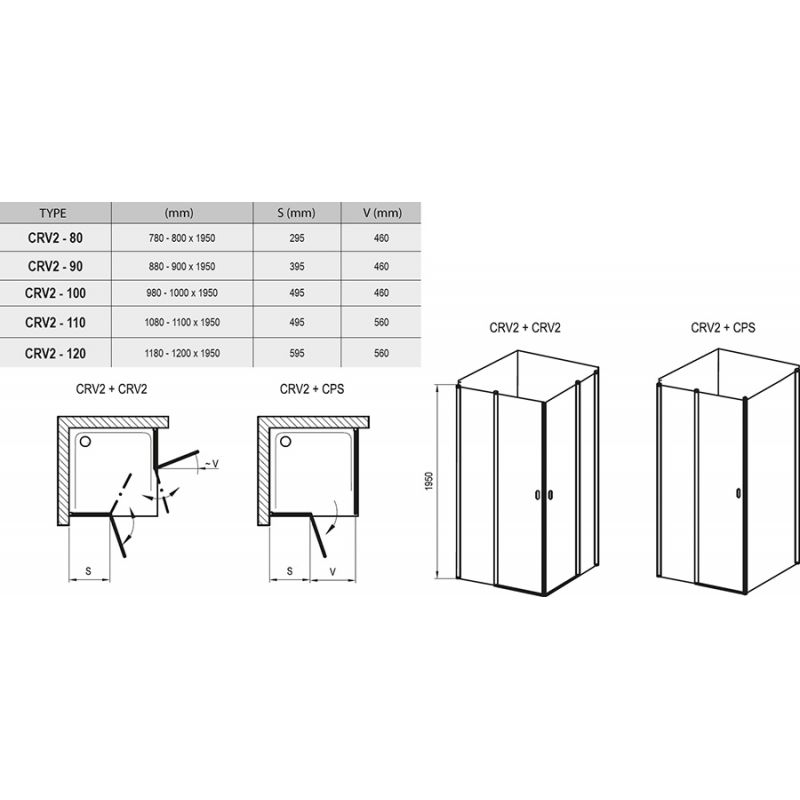 Душевой уголок Ravak Chrome CRV2-80 белый+транспарент 1QV40100Z1 — Характеристики и описание: