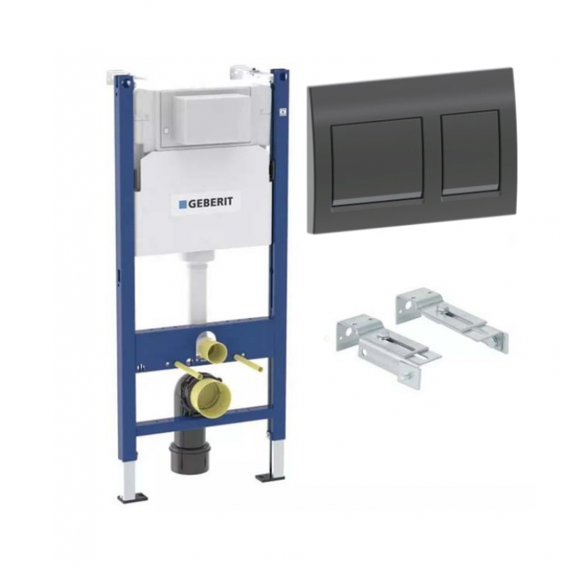 Инсталляция для подвесного унитаза Geberit Alpha 112 см с кнопкой Geberit Alpha 35, черный хром, 458.233.00.2A35Bc (оружейная сталь)