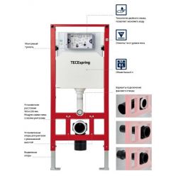 Инсталляция для унитаза TECEspring S955203, панель смыва с прямоугольными кнопками, белый глянцевый/хром глянцевый