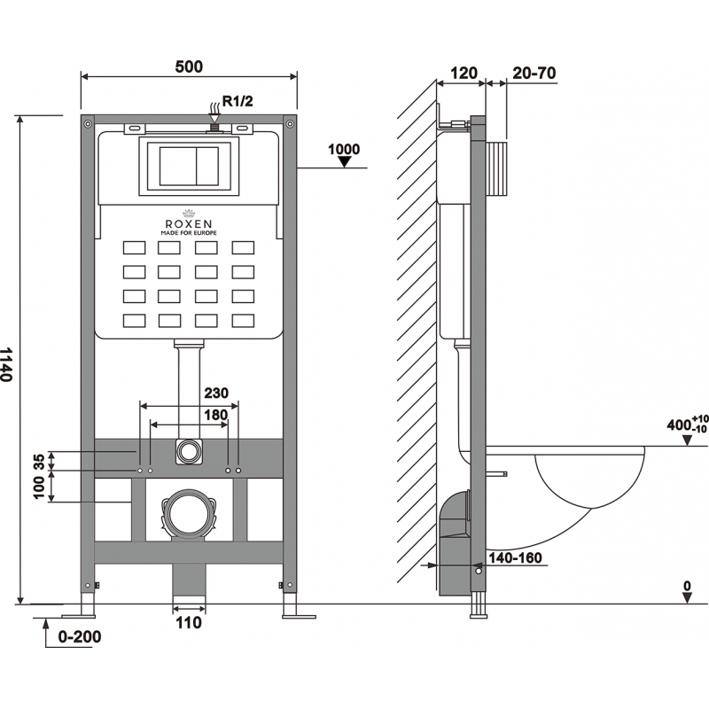 Комплект инсталляции для унитаза 6 в 1 Roxen StounFix Slim 964010 клавиша черная