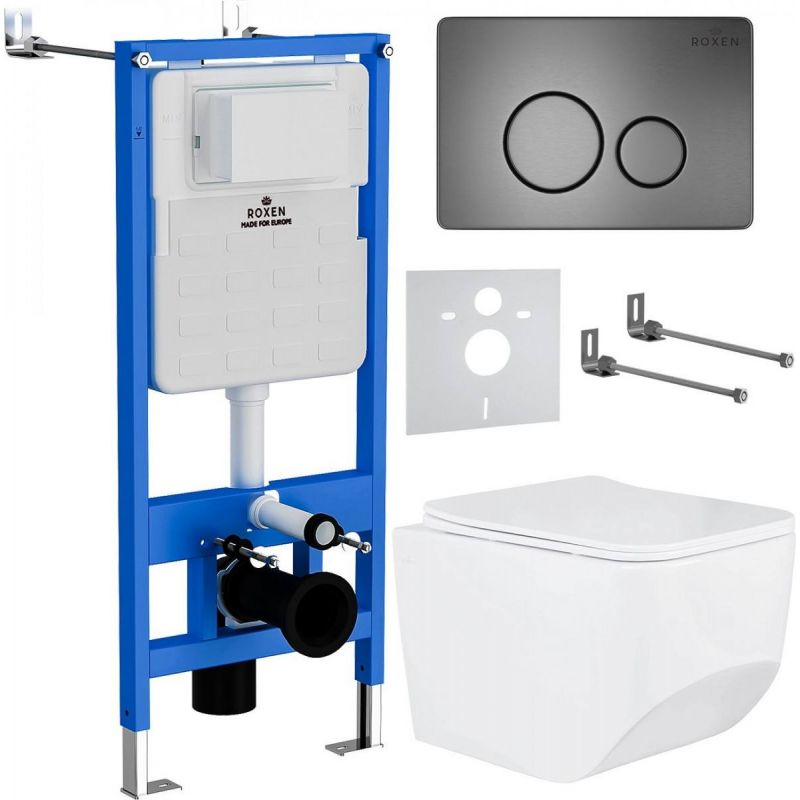Комплект инсталляции Roxen с унитазом StounFix Slim 632475 клавиша оружейная сталь