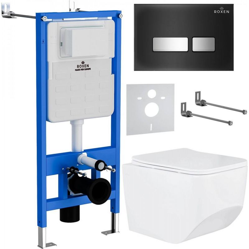 Комплект инсталляции Roxen с унитазом StounFix Slim 649644 клавиша черная