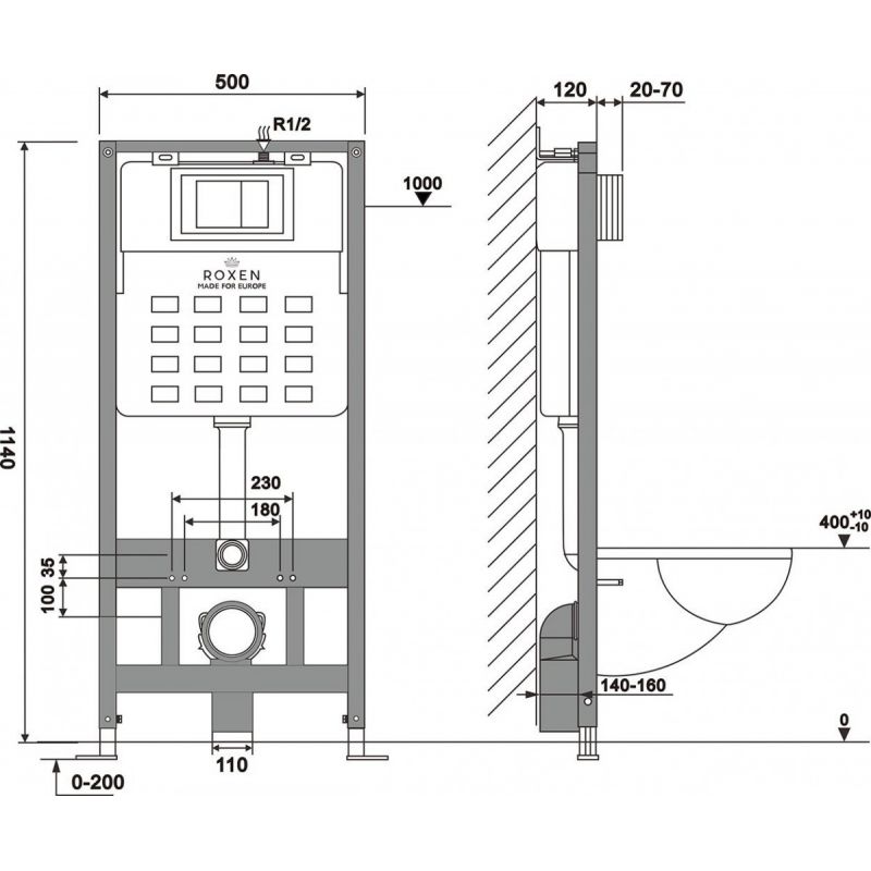Комплект инсталляции Roxen с унитазом StounFix Slim 962866 клавиша белая
