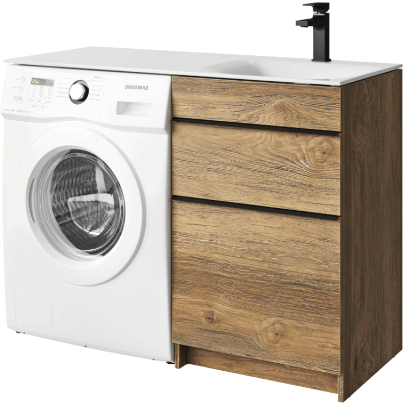 Комплект левой напольной тумбы для монтажа со стиральной машиной Aqwella Terra 115x50 см, дуб балтийский с умывальником Форма, TER01052NDB+FOR.11.04.D-R