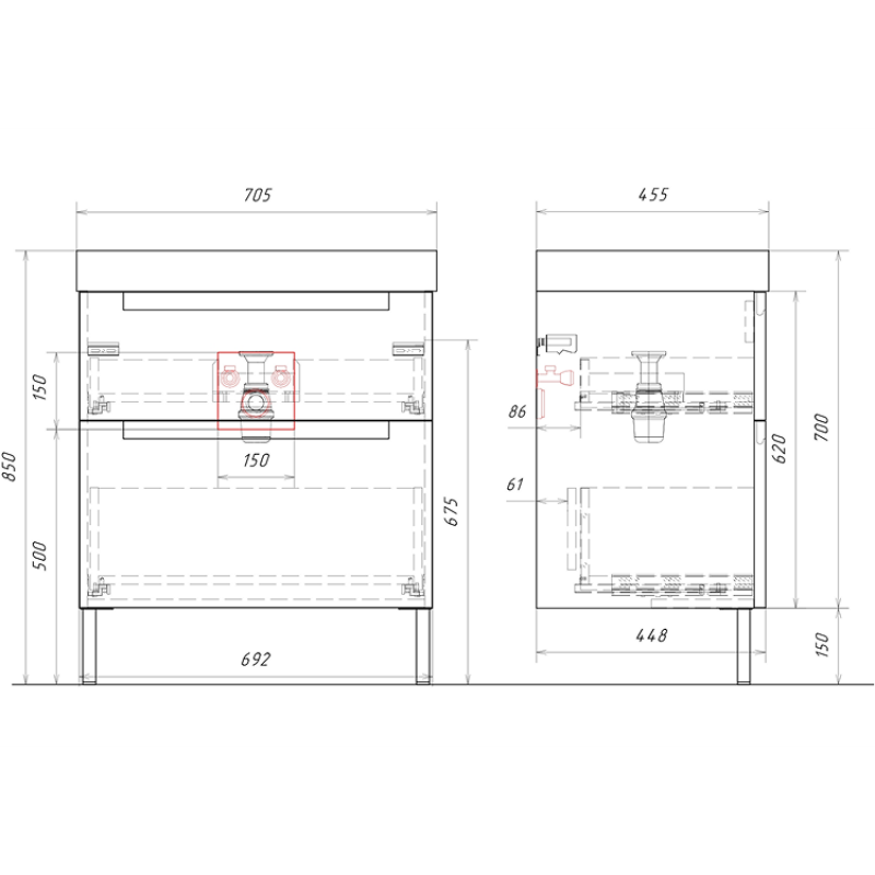 Комплект напольной тумбы Aqwella Vancouver 70x46 см, белый с умывальником Грэмми 70, VAN01072N+4610119205249