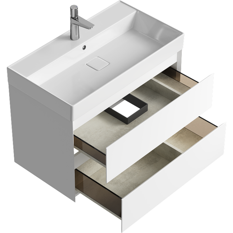 Комплект подвесной тумбы Aqwella Geometria 81x48 см на 2 ящика, белый с умывальником Вилис 81, GE01082WM+4610119205126