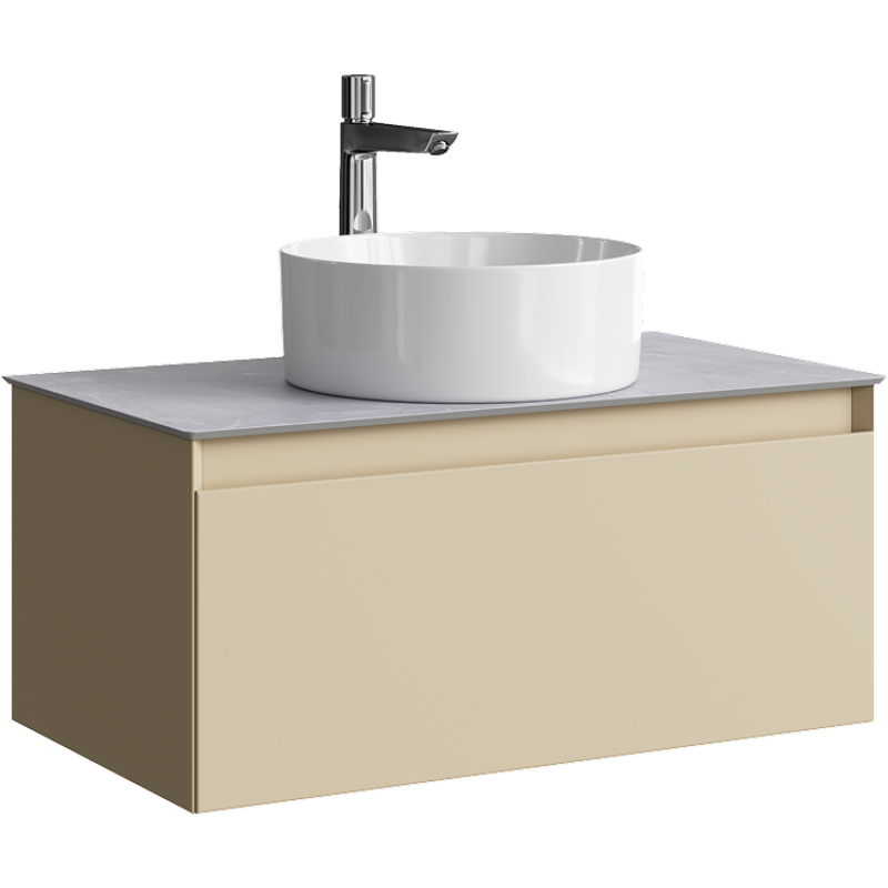 Комплект подвесной тумбы Aqwella Geometria 81x48 см, бежевый со столешницей из керамогранита, мрамор серый, GE01081MD+STG814X476GS