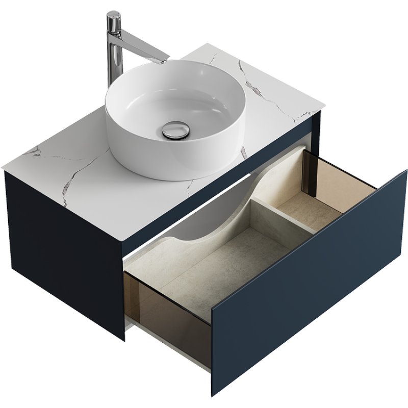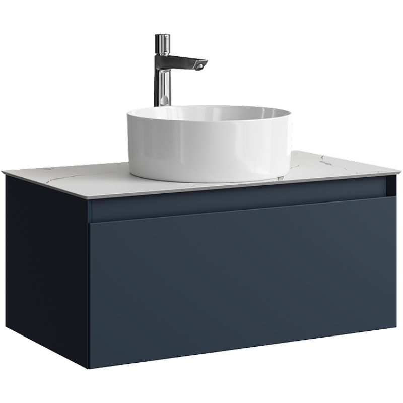Комплект подвесной тумбы Aqwella Geometria 81x48 см, темно серый со столешницей из керамогранита, мрамор белый, GE01081GRM+STG814X476MW