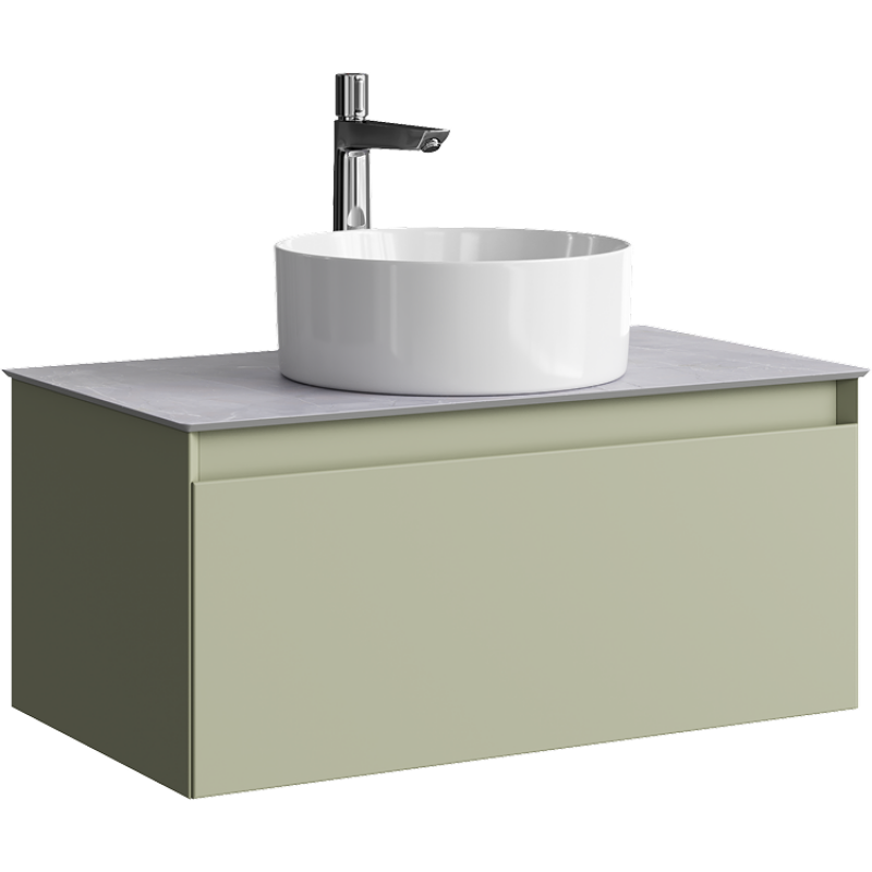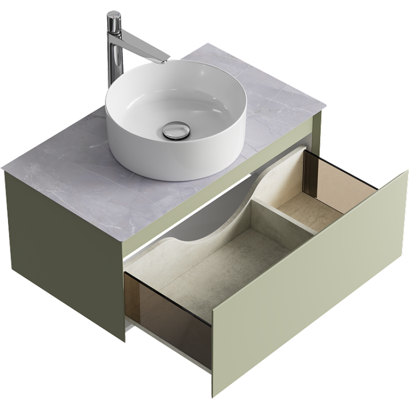 Комплект подвесной тумбы Aqwella Geometria 81x48 см, зеленый со столешницей из керамогранита, мрамор серый, GE01081SH+STG814X476GS