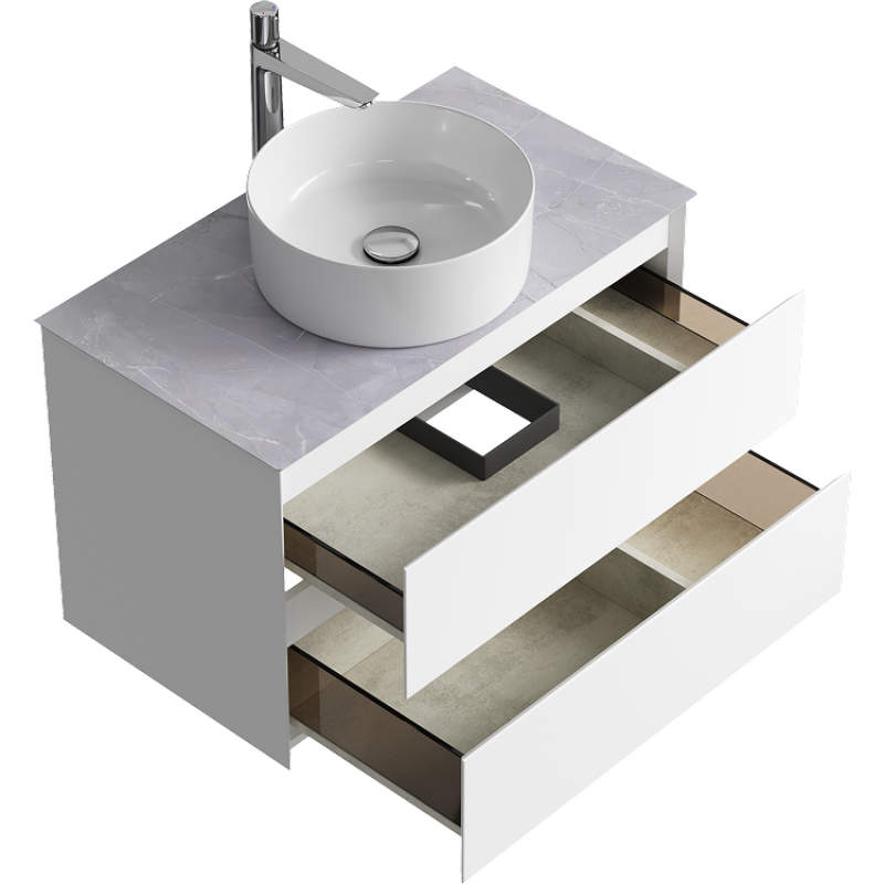 Комплект подвесной тумбы Aqwella Geometria 81x48 см на 2 ящика., белый со столешницей из керамогранита, мрамор серый, GE01082WM+STG814X476GS