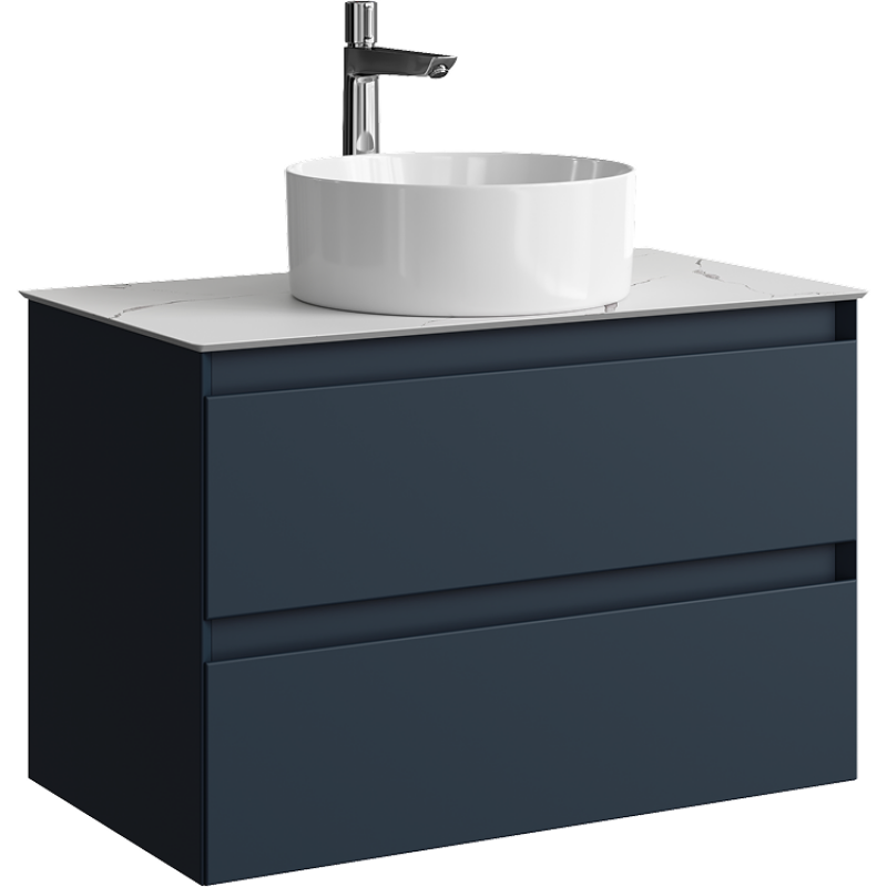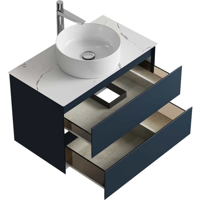 Комплект подвесной тумбы Aqwella Geometria 81x48 см на 2 ящика., темно-серый со столешницей из керамогранита, мрамор белый, GE01082GRM+STG814X476MW