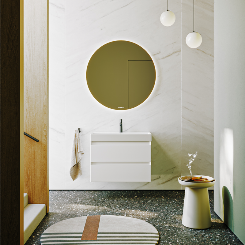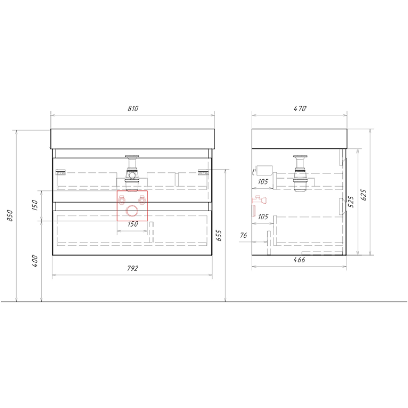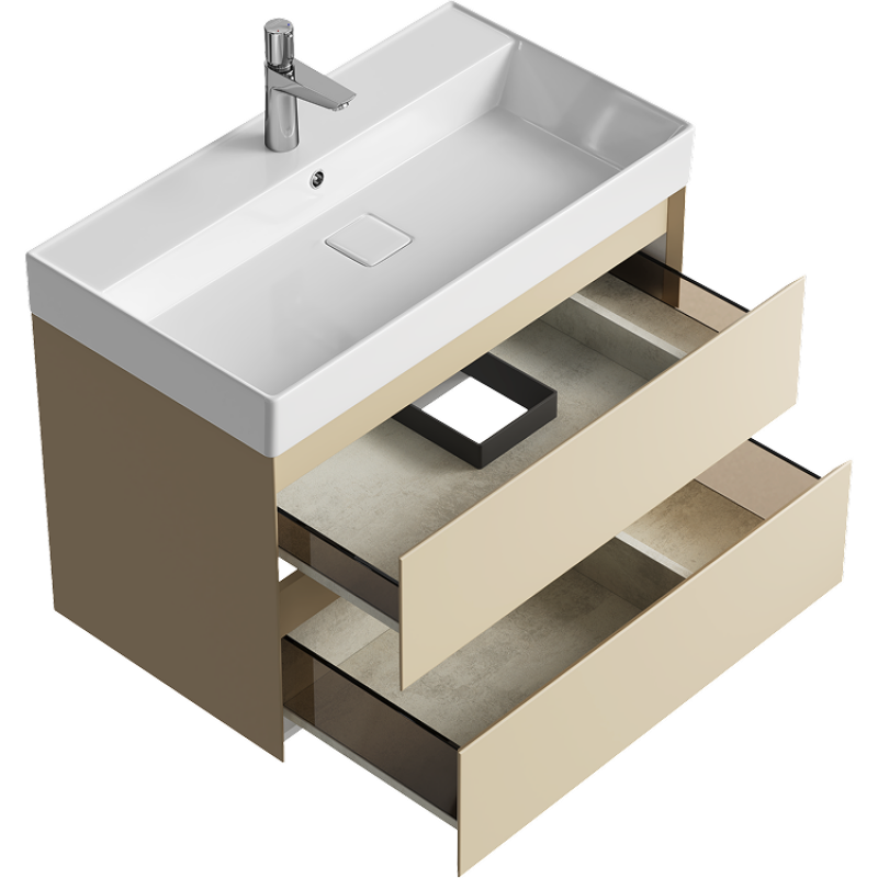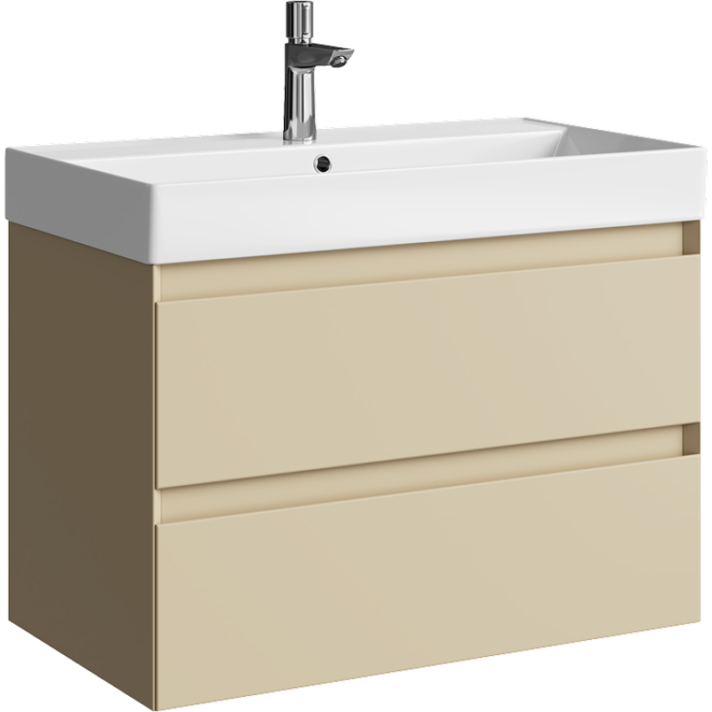 Комплект подвесной тумбы Aqwella Geometria 81x48 см на 2 ящика, бежевый с умывальником Вилис 81, GE01082MD+4610119205126