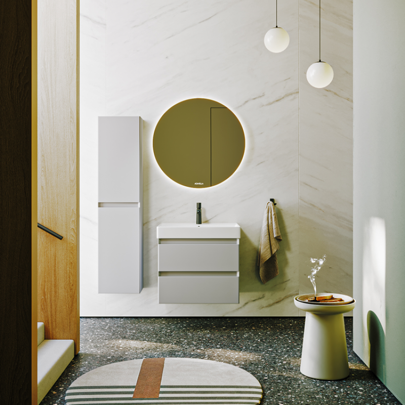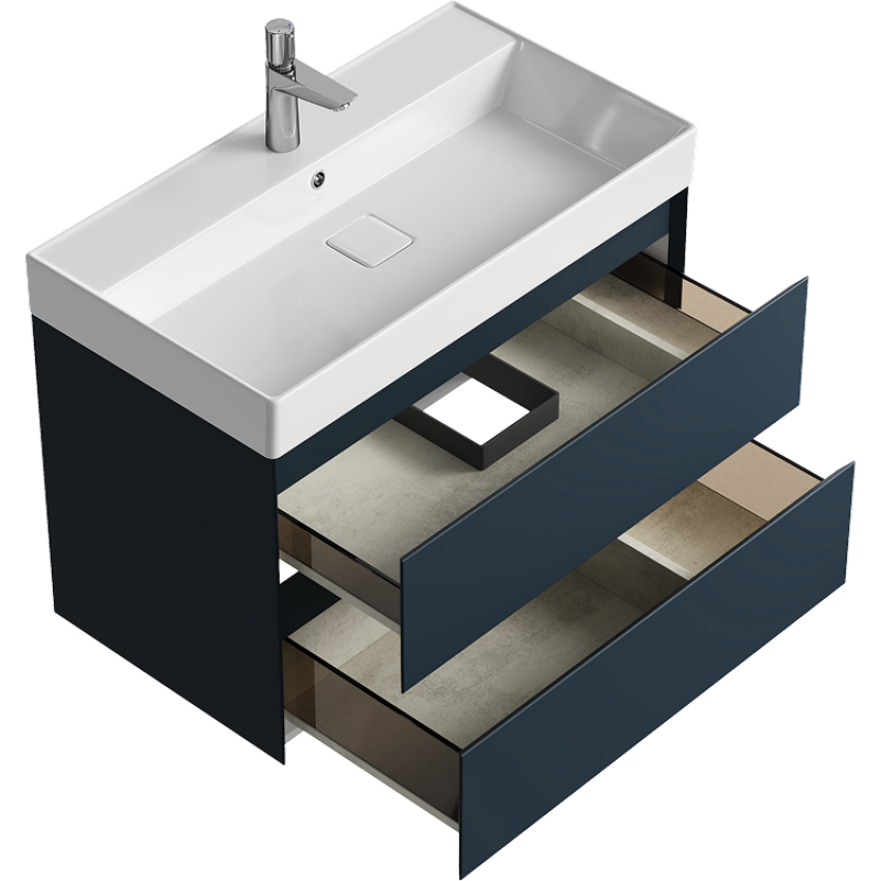 Комплект подвесной тумбы Aqwella Geometria 81x48 см на 2 ящика, темно-серый с умывальником Вилис 81, GE01082GRM+4610119205126
