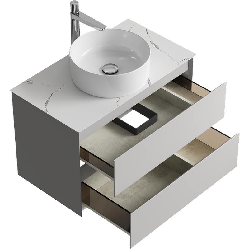 Комплект подвесной тумбы Aqwella Geometria 81x48 см на 2 ящика, светло-серый со столешницей из керамогранита, мрамор белый, GE01082ST+STG814X476MW