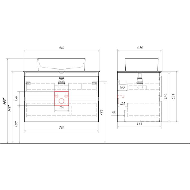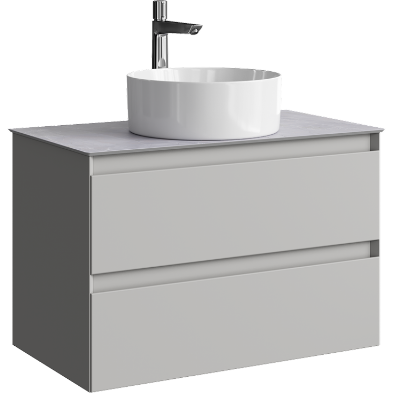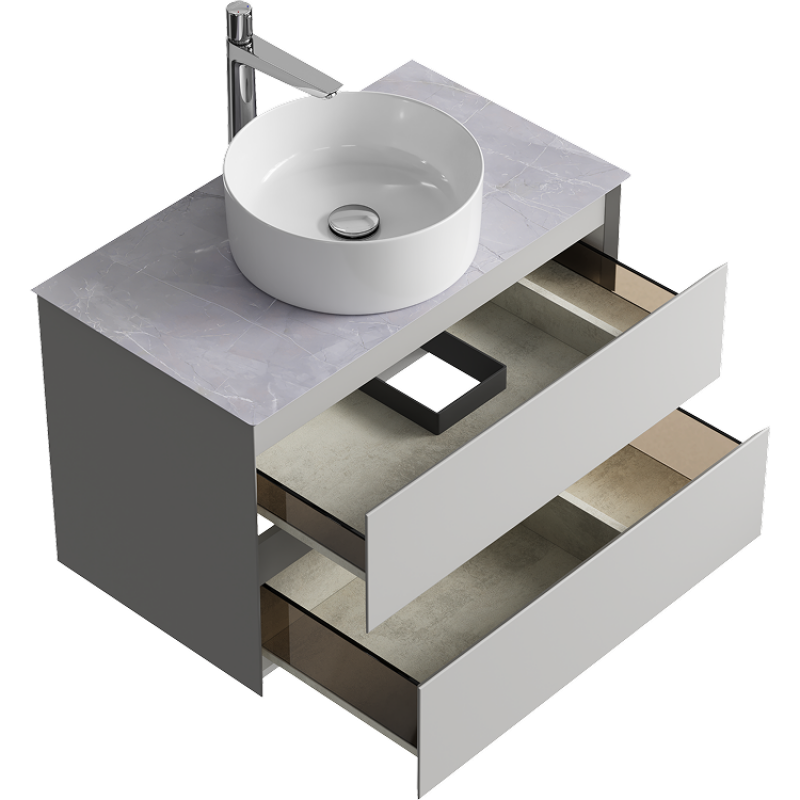 Комплект подвесной тумбы Aqwella Geometria 81x48 см на 2 ящика, светло серый со столешницей из керамогранита, мрамор серый, GE01082ST+STG814X476GS