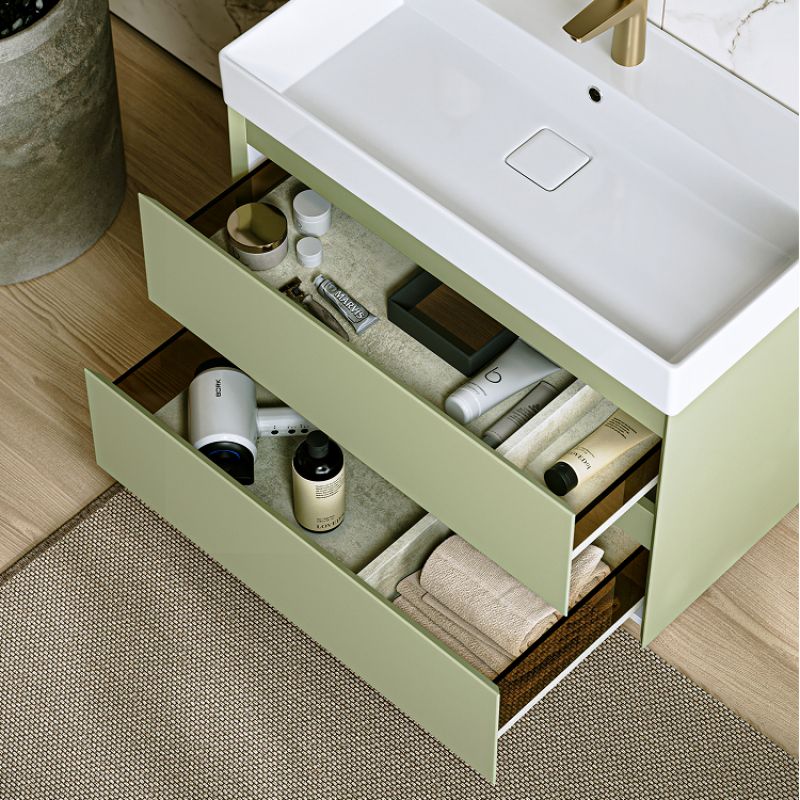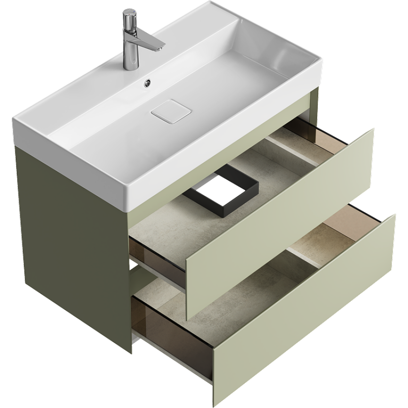 Комплект подвесной тумбы Aqwella Geometria 81x48 см на 2 ящика, зеленый с умывальником Вилис 81, GE01082SH+4610119205126