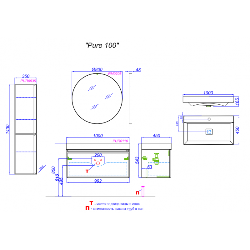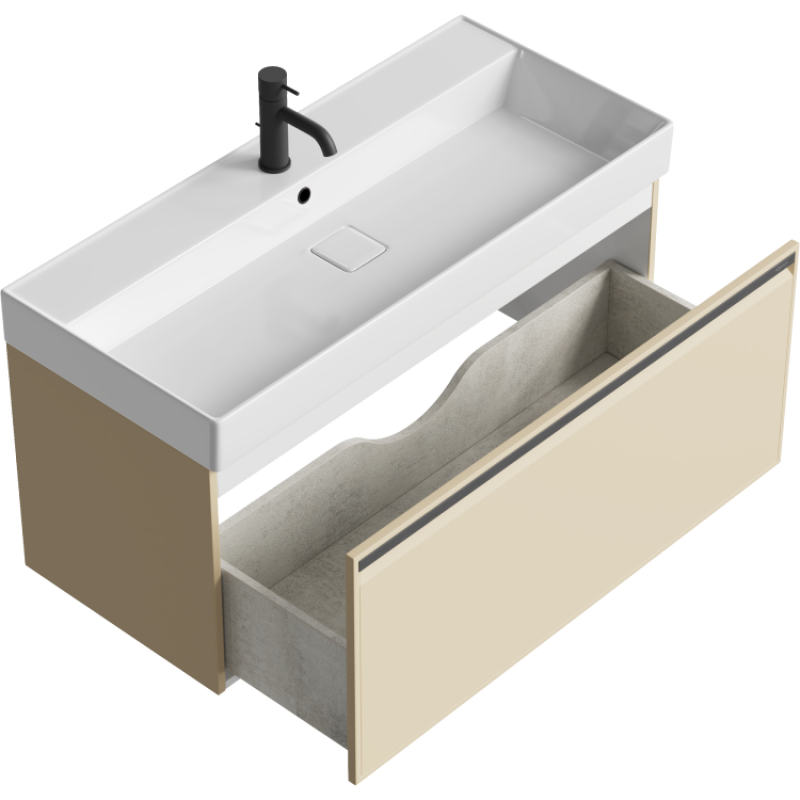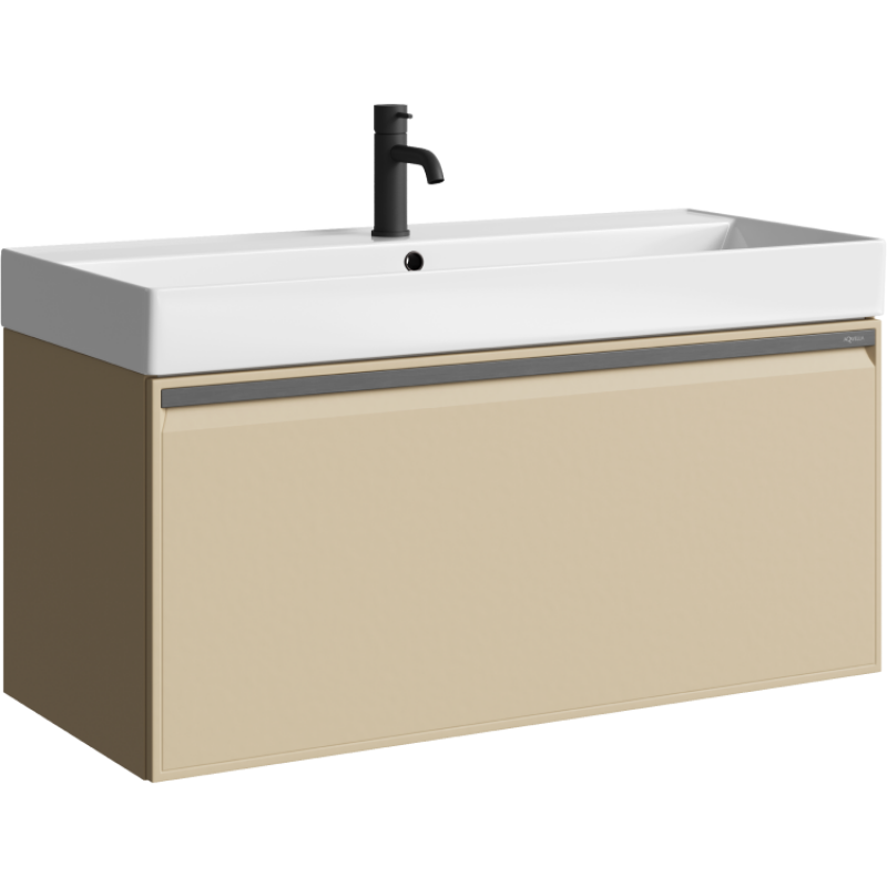 Комплект подвесной тумбы Aqwella Pure 100x45 см, бежевый с умывальником Вилис 100, PUR0110KS+4610119205164