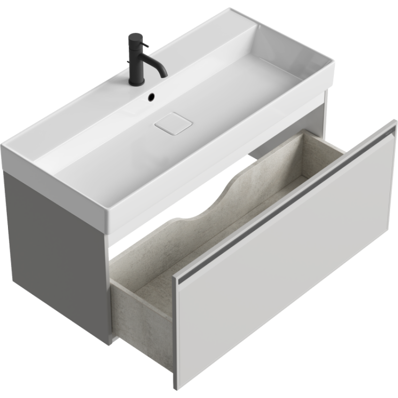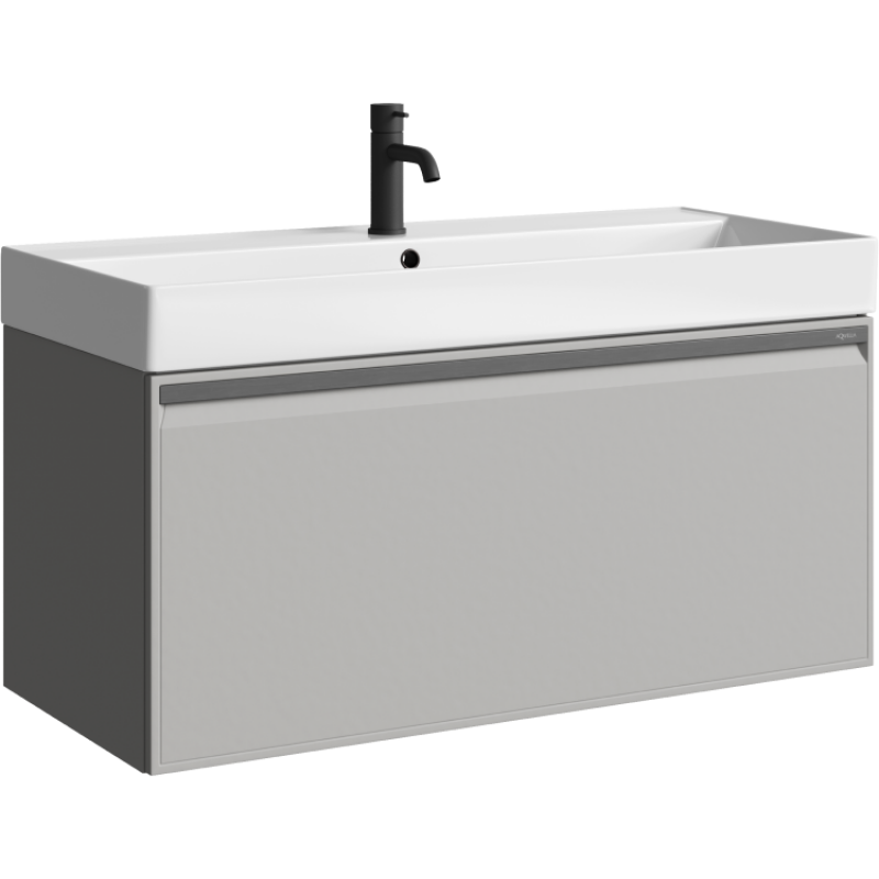 Комплект подвесной тумбы Aqwella Pure 100x45 см, светло серый с умывальником Вилис 100, PUR0110ST+4610119205164