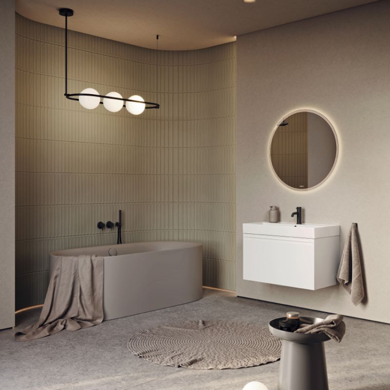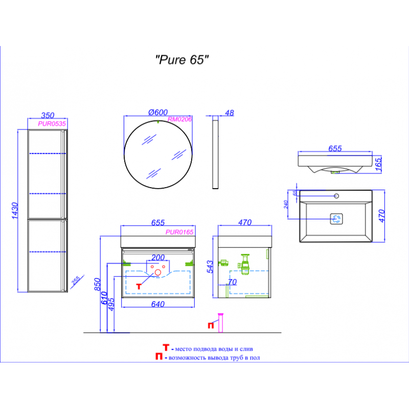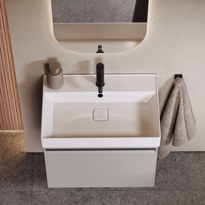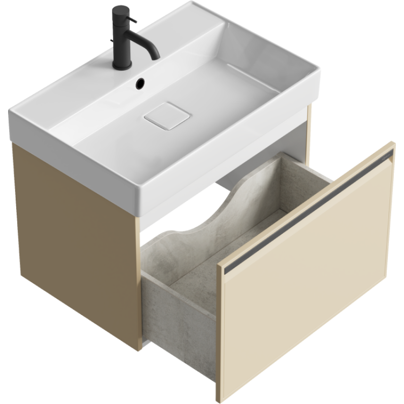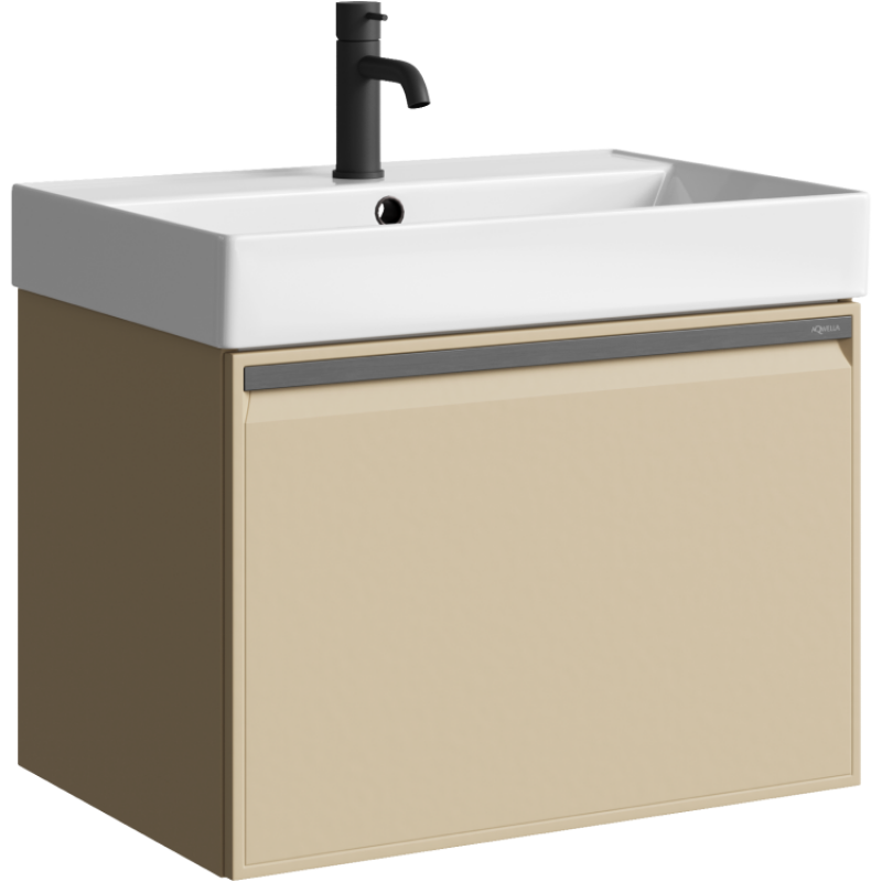 Комплект подвесной тумбы Aqwella Pure 66x47 см, бежевый с умывальником Вилис 66, PUR0165KS+4610119204013