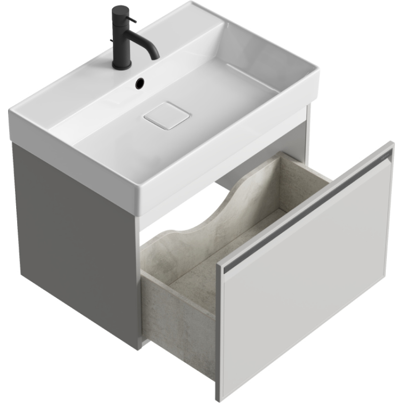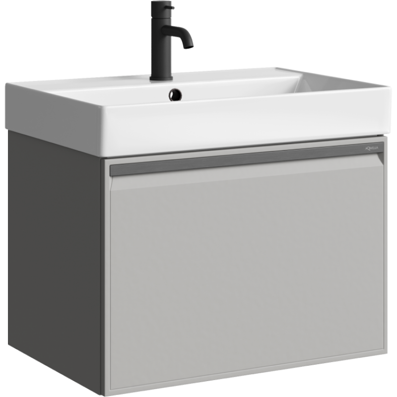 Комплект подвесной тумбы Aqwella Pure 66x47 см, светло серый с умывальником Вилис 66, PUR0165ST+4610119204013