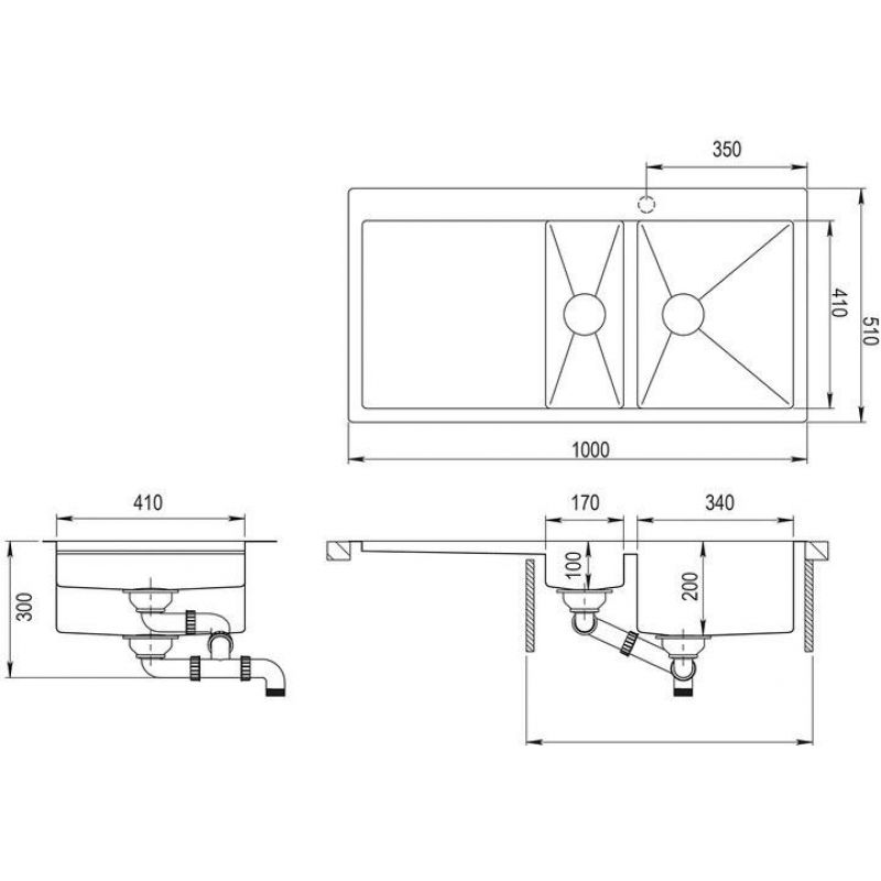 Мойка кухонная AquaSanita Steel LUNA 151 M-R 100х51