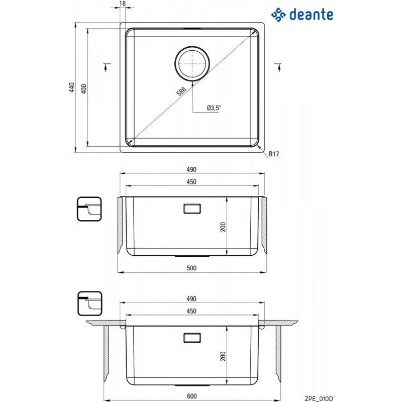 Мойка кухонная Deante Egeria ZPE_010D 50x44 брашированная сталь