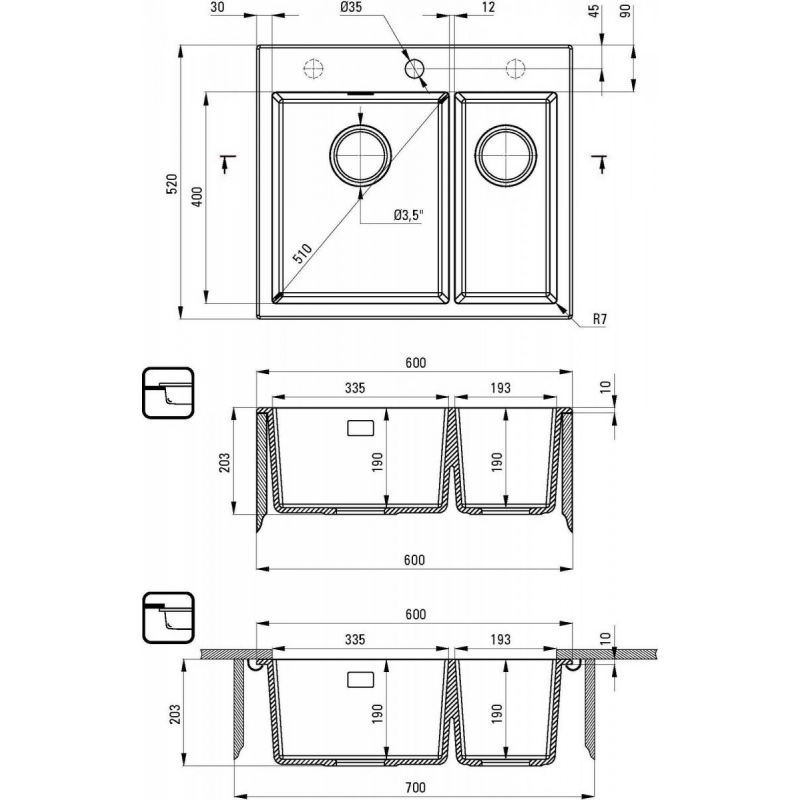 Мойка кухонная Deante ERIDAN ZQE_G503 60x52 графитовый металлик