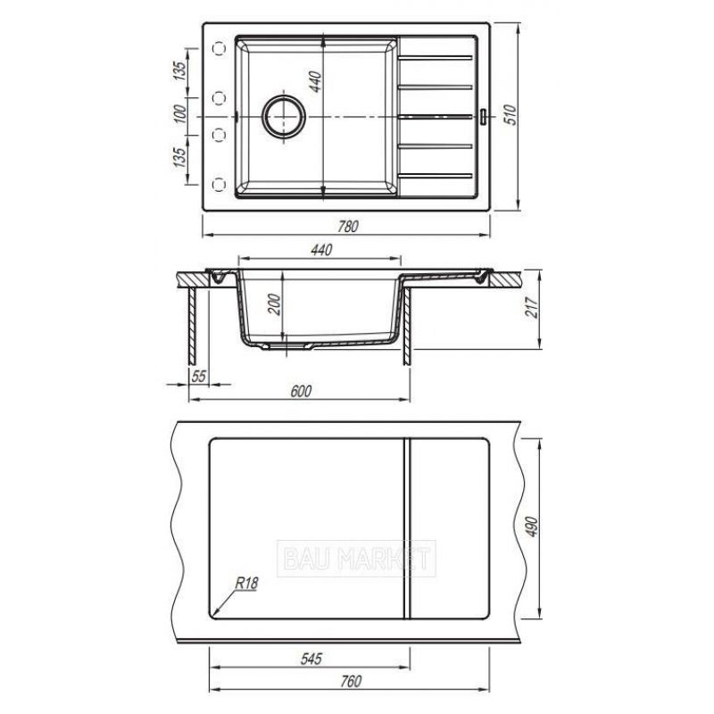 Мойка кухонная Florentina Липси 780P жасмин (20.275.D0780.201)